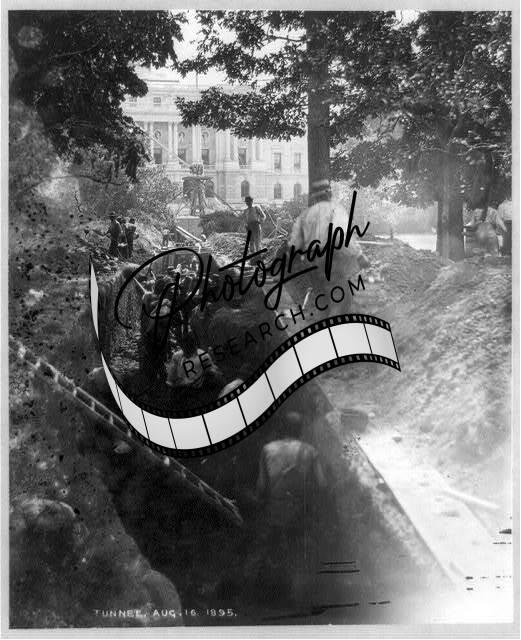 Workmen digging tunnel between Library of Congress and US Capitol,August,1895
