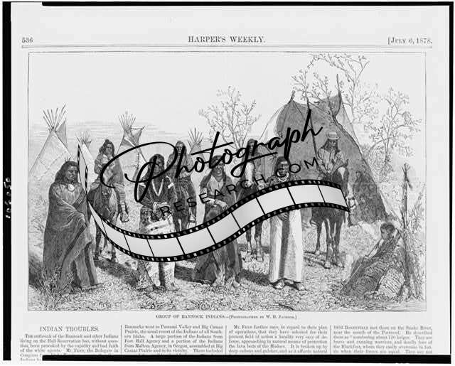 Group,Bannock Indians,Shoshoni,tipis,clothing,dress,Idaho,ID,W Jackson,1878
