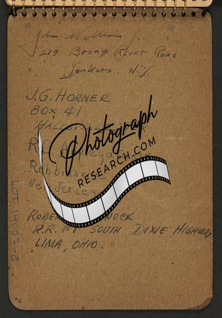 Inside back cover,sketchbook,volume 8,names,addresses,Victor Alfred Lundy,1944