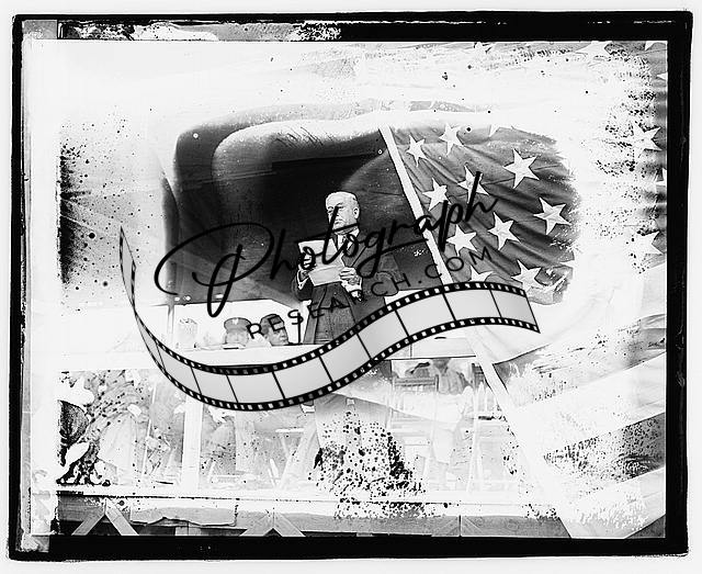 This glass negative might show streaks and other blemishes resulting from a natural deterioration in the original coatings.