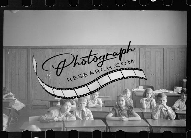Greenbelt schoolroom,children,students,desks,boys,girls,cabinets,Maryland,1937