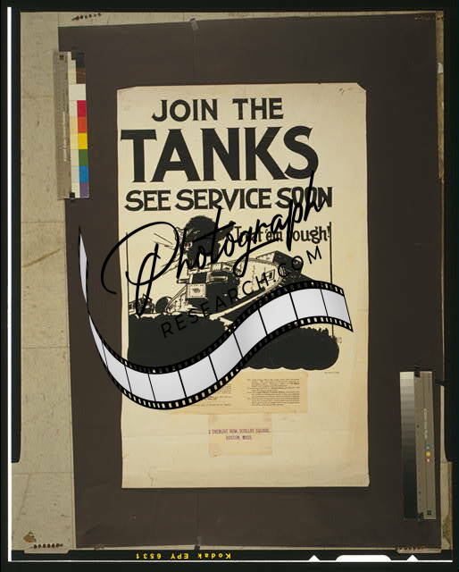 Join the Tanks,Treat 'em Rough,WWI,Military,angry cat atop tank,War Poster photo