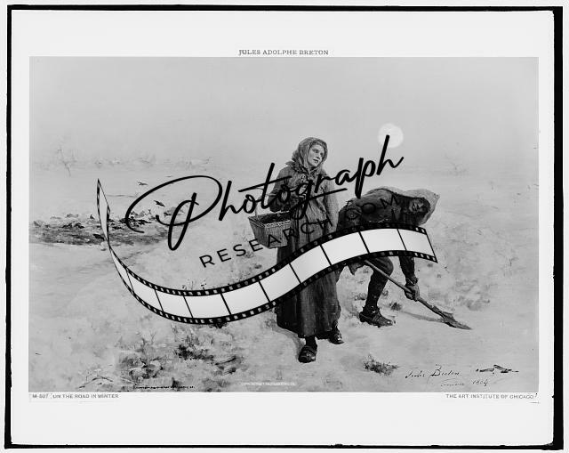 Road,winter,couples,snow removal,Jules Breton,Detroit Publishing Company,c1900