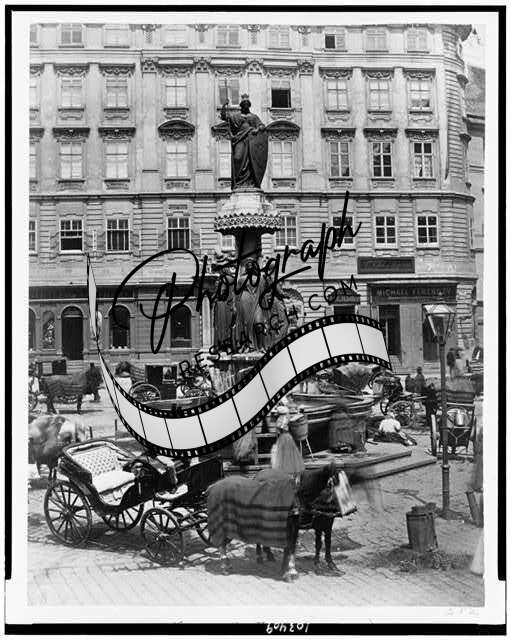 Freyung,fountains,cities,buildings,pedestrians,carriages,Vienna,Austria,1860