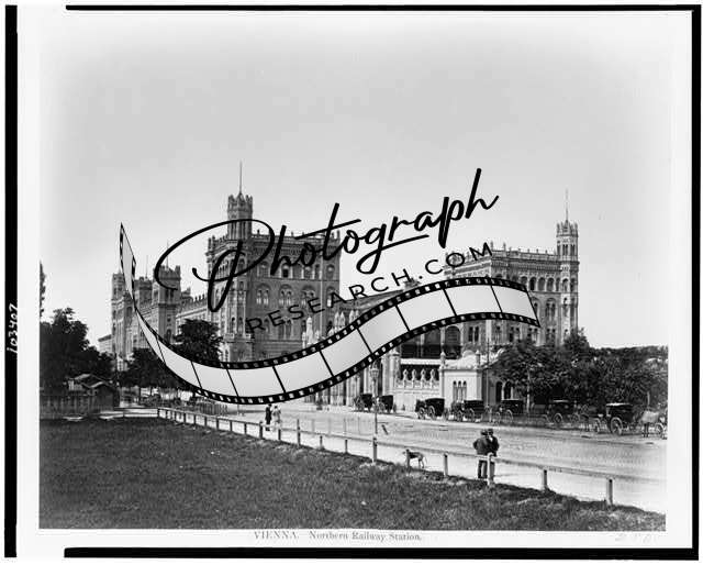 Northern Railway Station,buildings,travel,horse drawn carts,Vienna,Austria,1860