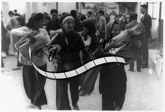 Vietnam,women carrying goods on street,1950-51,street vendors