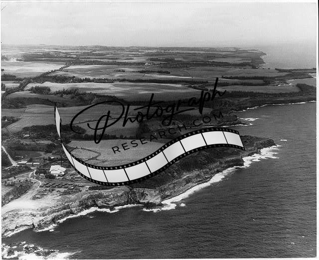 Island of Hawaii,HI,1930s,Aerial View,Orderly Sugar Farm and coast