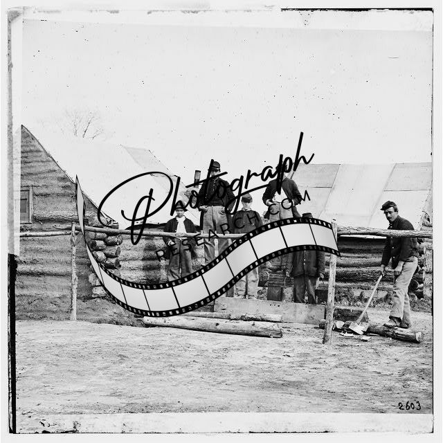Soldiers,military camp,structures,log buildings,United States Civil War,1861