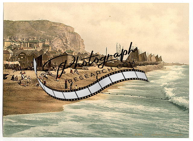 East Cliff,with beach,fish market,Hastings,England,c1895