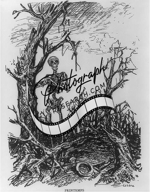 Printemps,Death amid war devastation,c1916,Cartoon drawing by Cesare,c1916