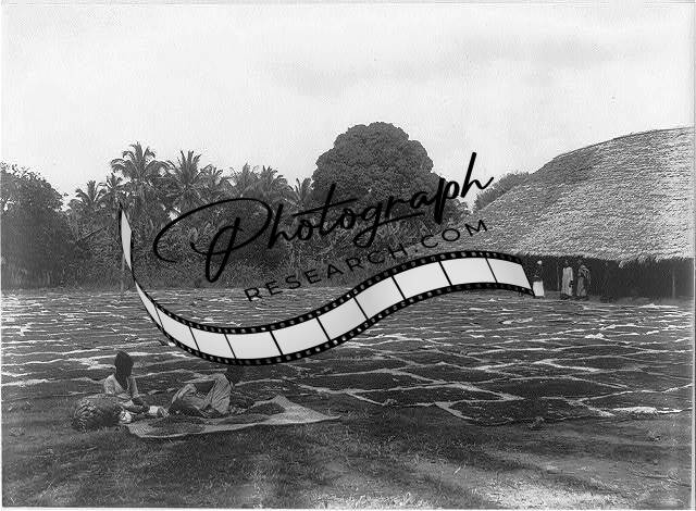 Drying cloves at Zanzibar,East Africa,1890-1923,people,building,trees