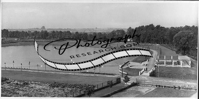 Aerial view of lake and park seating area at Adolf Hitler-Park und -See, Stendal