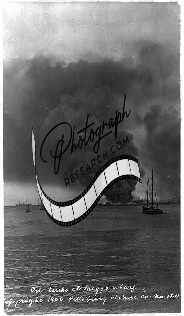 Oil tanks burning at Meggs Wharf,San Francisco,California,Earthquake & Fire,1906