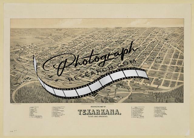 Perspective map of Texarkana,Texas,Arkansas,Bowie County,Miller County,c1888