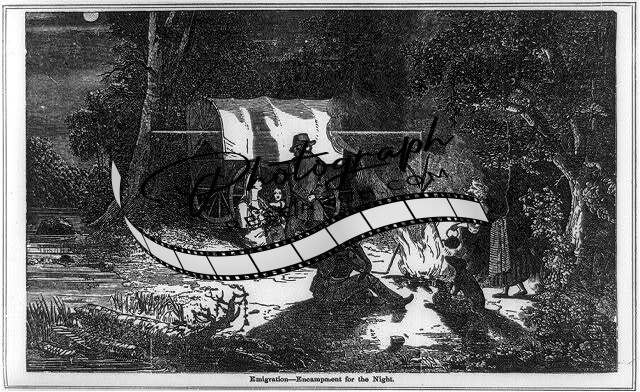 Emigration - encampment for the night,Immigration,campfire,covered wagon