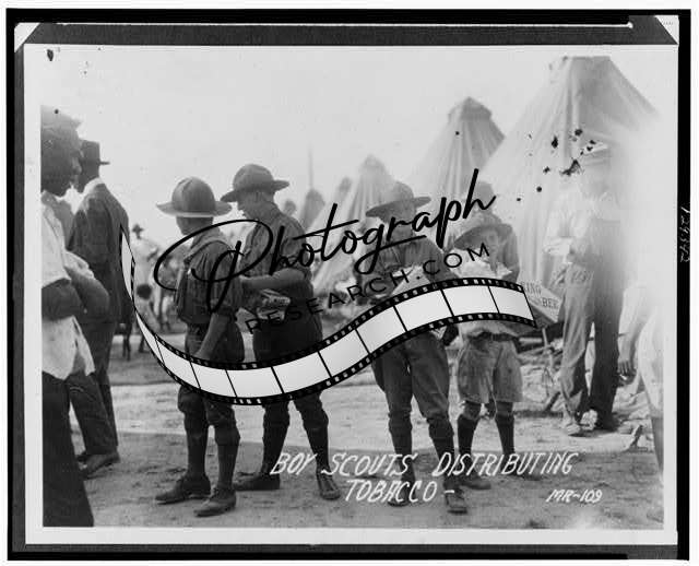Boy Scouts distributing tobacco, 1927 Flood