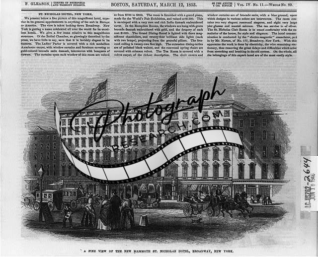 A Fine View of the New Mammoth St. Nicholas Hotel, Broadway, N.Y.