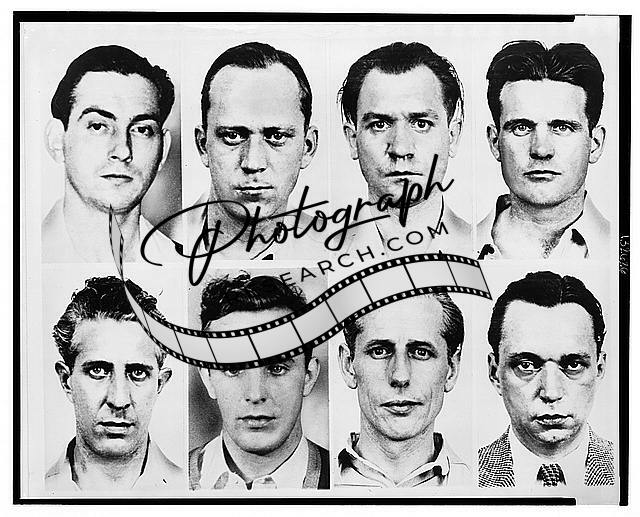 Six of these executed as two are spared, (l to r) Herman Neubauer, Henry Harm Heinck, Werner Thiel and Edward John Kerlings; bottom (l to r) Richard Quirin, Herbert Hans Haupt, George Dasch and Ernest Peter Burger.