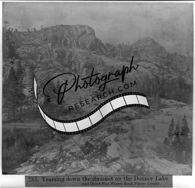 Teaming down the Summit,Donner Lake,Dutch Flat Wagon Road,Placer County,1866,CA