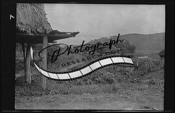 View,Ainu village beyond trees,buildings,paths,nitrates,Arnold Genthe,1908