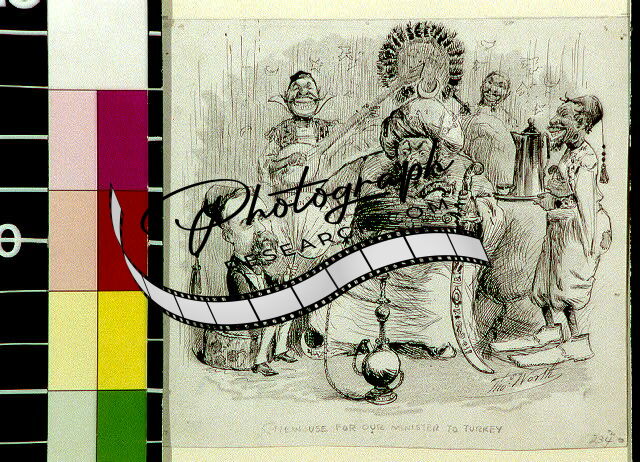New use for our minister to Turkey,c1885,Thomas Worth,Samuel Sullivan Cox,Sultan