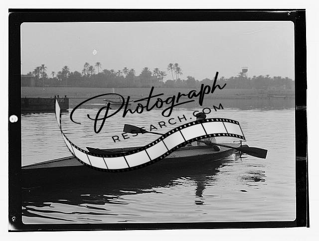 Iraq,Lady Surma,Mr. Pudley & Rev. John B. Panfil. Man in boat with one piece oar