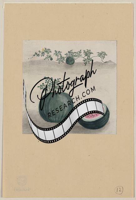 Watermelon with plant growing in the background,Fruit,c1830,Japan,Agriculture