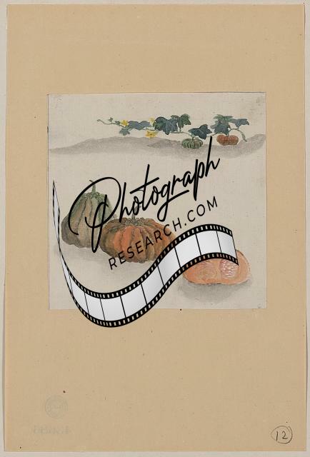 Kabocha squash with plant growing in the background,Agriculture,Japan,c1830