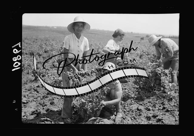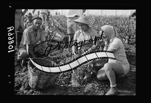 Title: Vintage activities at Richon-le-Zion, Aug. 1939. Grape pickers, old Yemenite & European immigrant