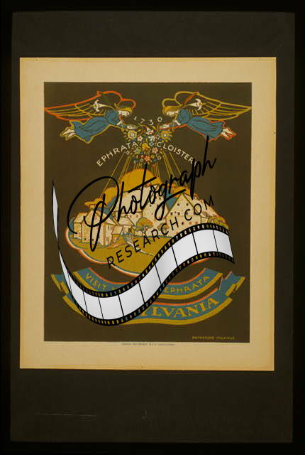 Summary: Poster promoting the Ephrata Cloister, Lancaster Co., Pa., showing two angels dropping flowers on the community.