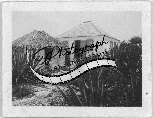 Title: [Woman standing, facing front, two houses in background, possibly from the visit by Alan Lomax and Mary Elizabeth Barnicle to Andros Island in the Bahamas]