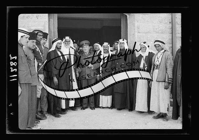 Title: Visit to Beersheba Agricultural Station (Experimental) by Brig. Gen. Allen & staff & talks to Bedouin sheiks of district by station superintendent. General Allan & Sheik 'Abu Sitti' in above room