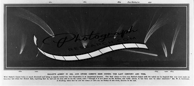 Photo,Diagram of Earth's encounter,Tail of Halley's Comet,May 18,1910,Celestial