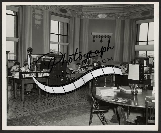 Bibliographer checking incoming materials,Serials Division,Janie Mason,1951