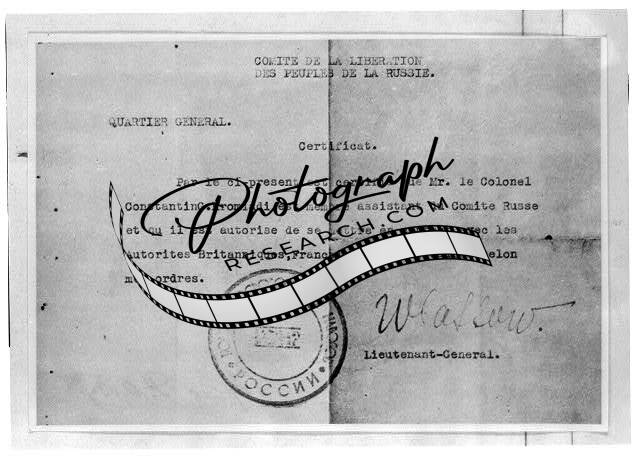 Photo of Document presented to Andrey Andreyevich Vlasov,1942