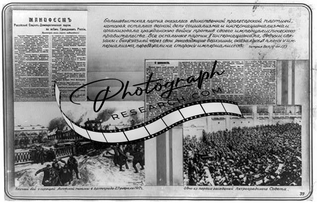 No. 113 in: Reproductions of Russian photographs and paintings of events and people important in the history of the Russian revolution and the turbulent years following, 1917-1935.