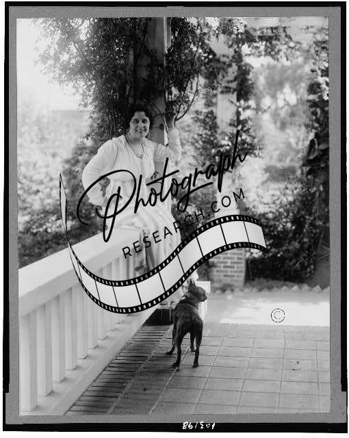Geraldine Farrar,porch banister,dog,soprano opera singer,film actress,c1916