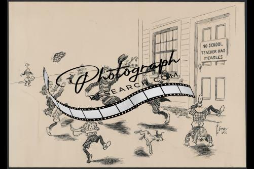 Cartoon,boys dancing,Schoolhouse,1914,Percy Crosby
