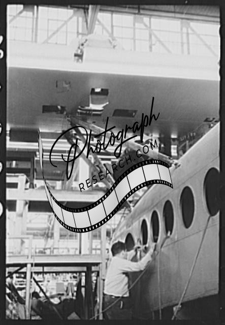 Title: Checking dimensions on an airplane part at the Vought-Sikorsky Aircraft Corporation, Stratford, Connecticut