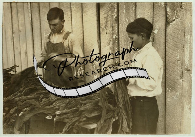 Title: [c/o W.A. Daniel - Route 2 - Woodburn, Ky. Lester Daniel, [...] years old and 17-year old cousin stripping tobacco. See Kentucky report and special card.] Location: [Woodburn, Kentucky] / [Lewis W. Hine]