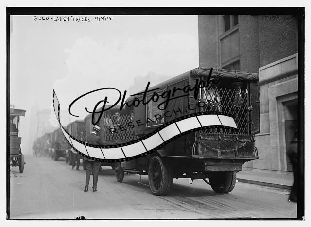 Gold-laden trucks,September 8,1915,automobiles,men,Bain News Service