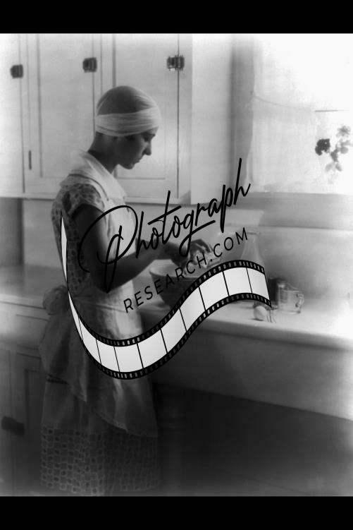 Girl as housemaid,woman preparing food in kitchen,April 9,c1928,cookery