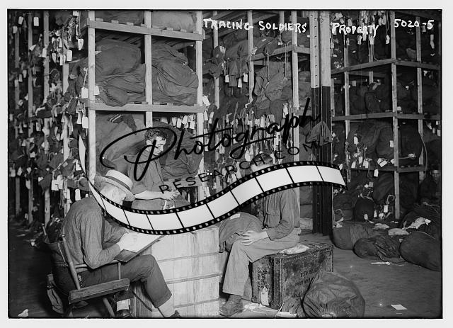 Soldier's Lost Property,storage facilities,troops,packs,bags,Bain News Service