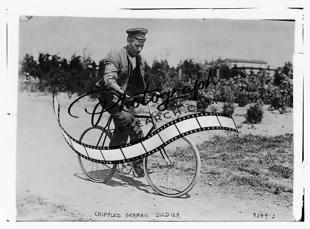 Crippled German soldier on bike,bicycle,Prosthetic arm,Bain News Service