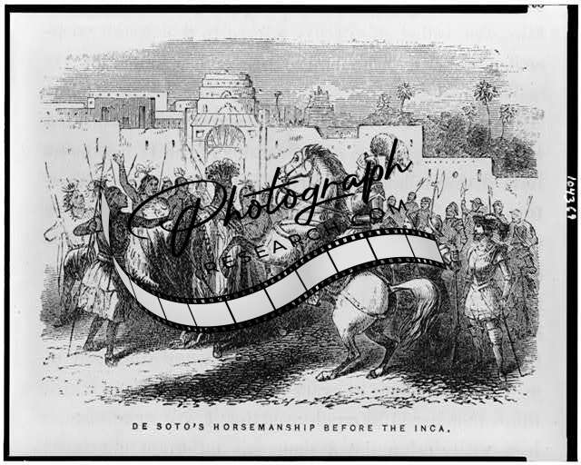 Hernando de Soto's horsemanship before Inca,conquest,battles,Atahualpa,Peru,1858