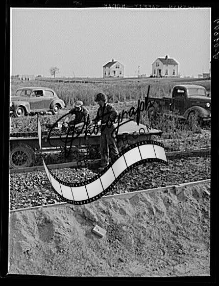 Title: Cantaloupe planting. Deshee Unit, Wabash Farms, Indiana. This member of the cooperative is marking the field off. A plant will be put at each spot where the lines cross. This method will permit cross cultivation