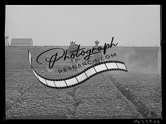 Title: Cantaloupe planting. Deshee Unit, Wabash Farms, Indiana. One man plows up a furrow, the rest of the crew plants cantaloupes in it