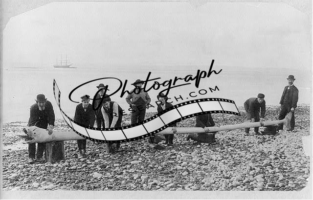 Sea Serpent #3,c1906,9 men posed with sea serpent,beach