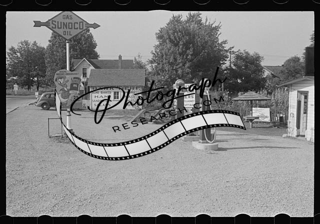 Gas station in Plain City,Ohio,OH,Farm Security Administration,FSA,August 1938