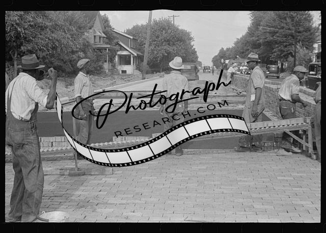 Laying brick,Route 40,central Ohio,OH,Summer 1938,Farm Security Administration,7